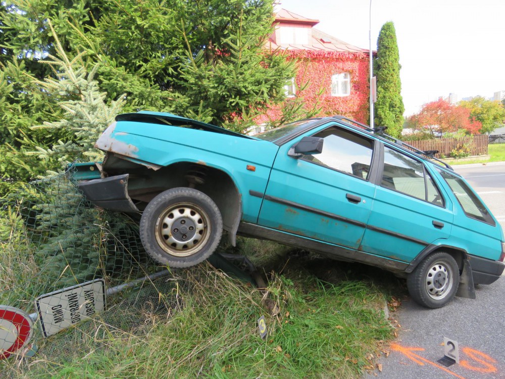 Senior za volantem škodovky nejspíš usnul, zastavil ho až náraz do plotu a značky