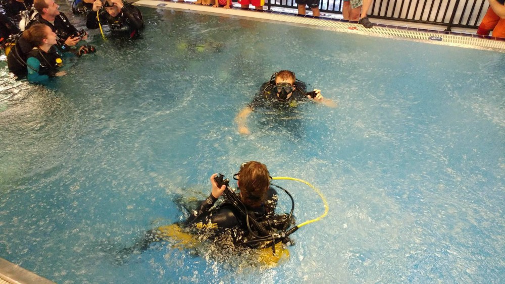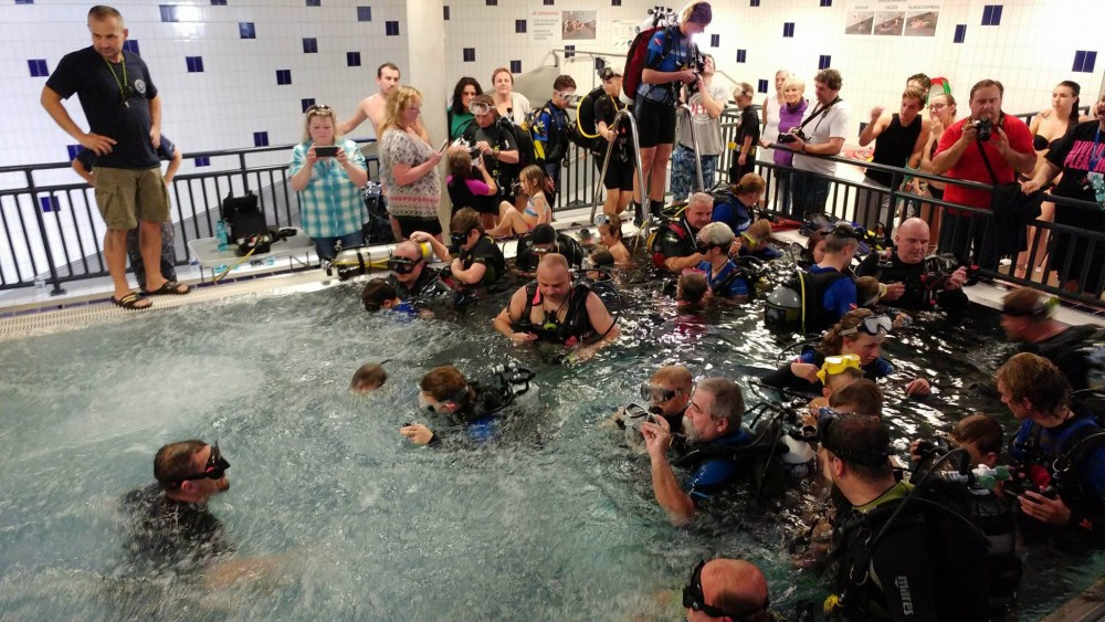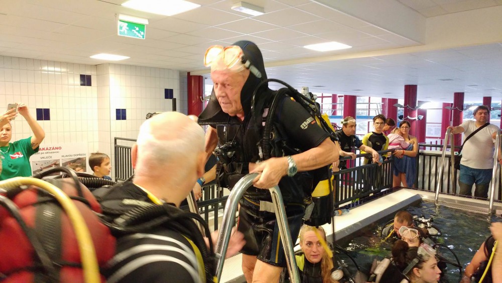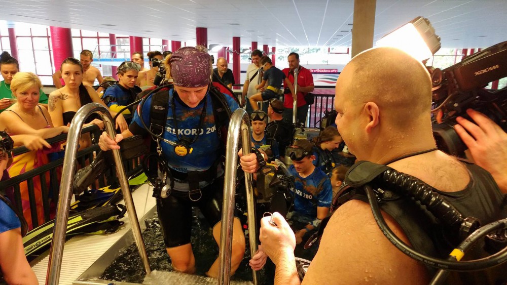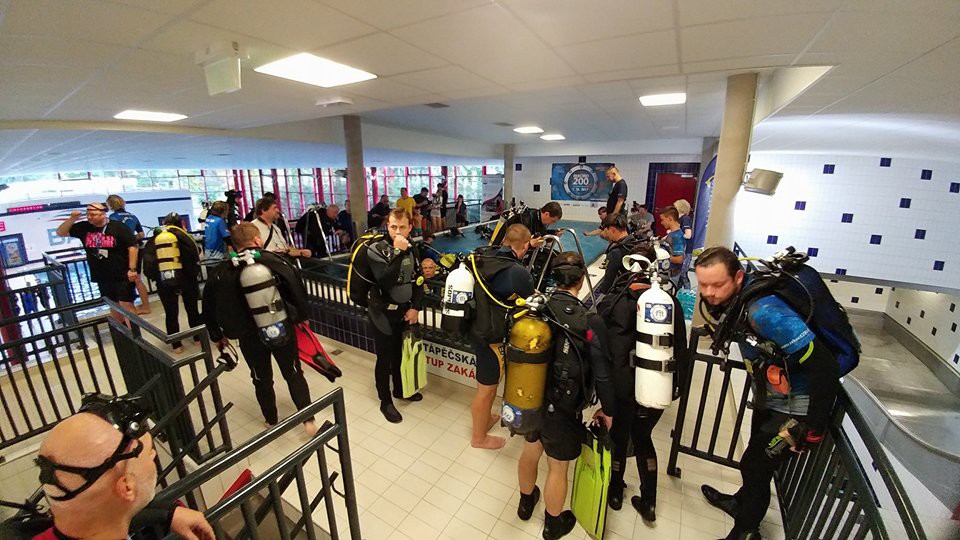V plaveckém bazénu v Liberci se podařilo překonat český rekord v počtu potápěčů, kteří byli najednou v potápěčské věži.