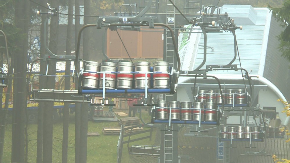 Na lanovce kroužily stovky pivních sudů. Technici testovali před zimní sezonou funkčnost brzd.