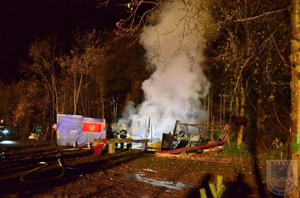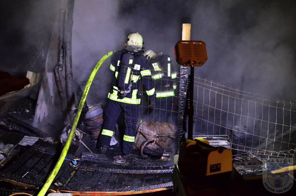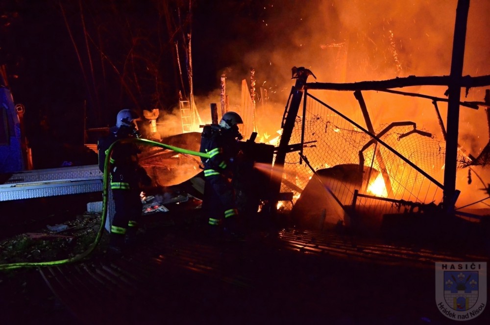 FOTO: Na česko-polské hranici hořela chatka. Požár zaměstnal i liberecké hasiče