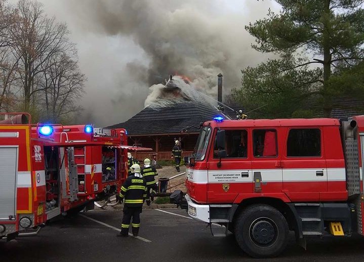 Vyhlášenou kolibu 4 Kameny u dálnice ve směru na Prahu zachvátil rozsáhlý požár.