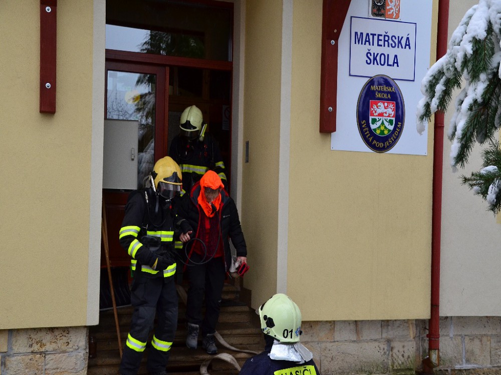Hasiči evakuovali sedmnáct děti ze školky. Cvičný zásah zaměstnal profesionály i dobrovolníky.