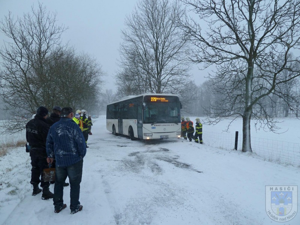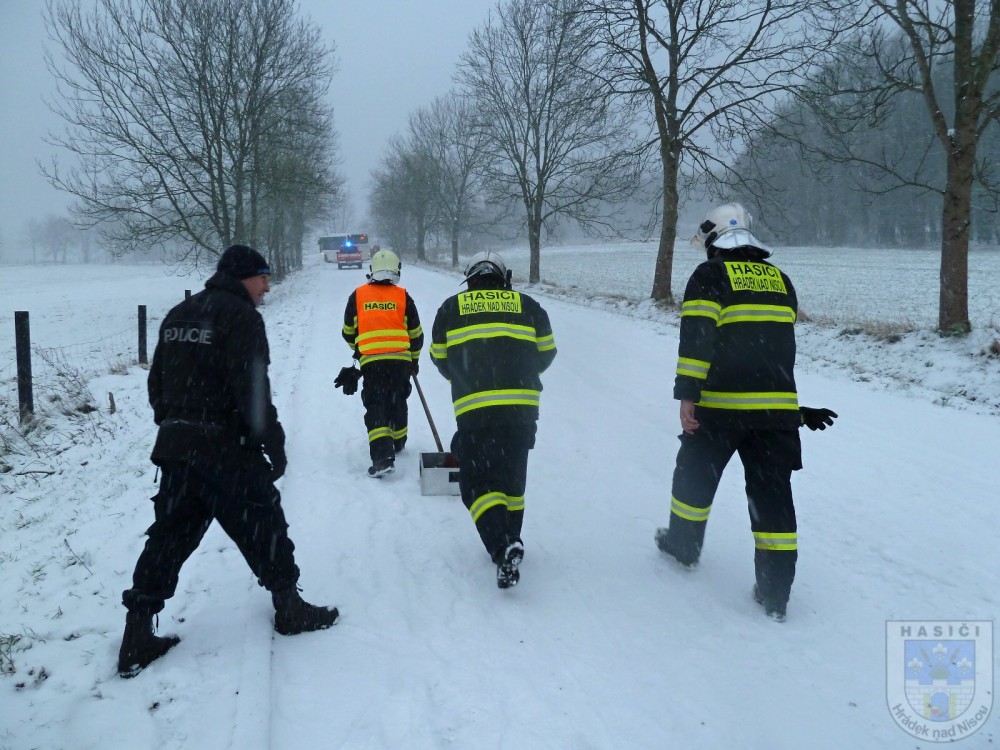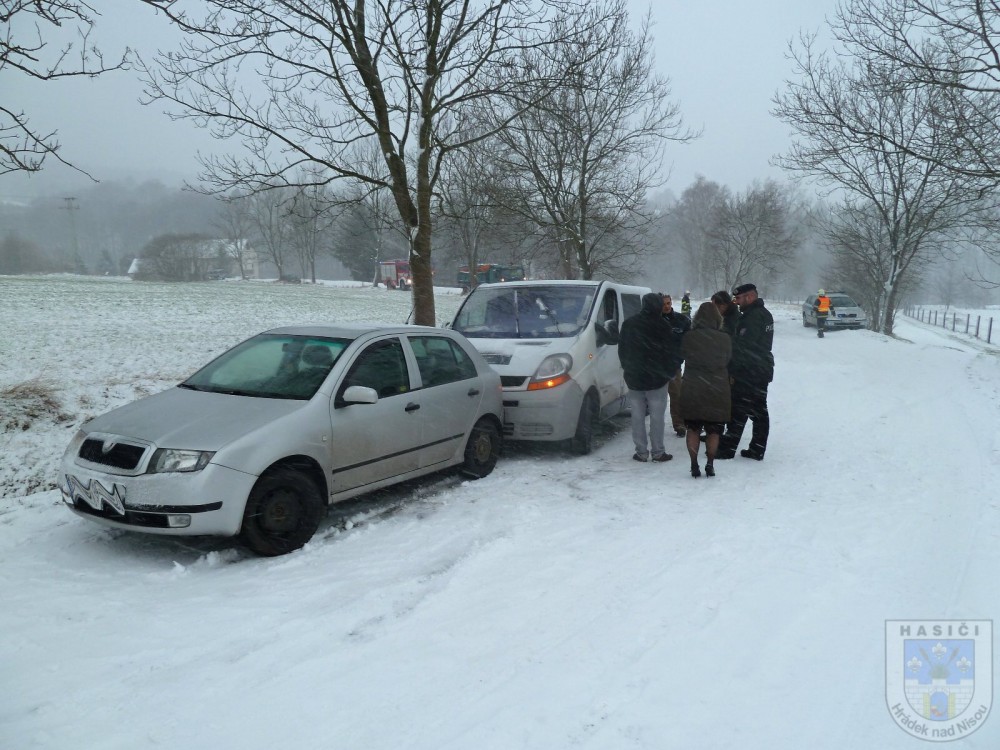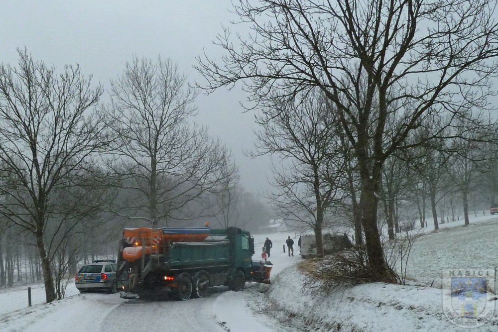 FOTO: Ledovka a sníh potrápily řidiče. Auta bourala, zapadl i pluh