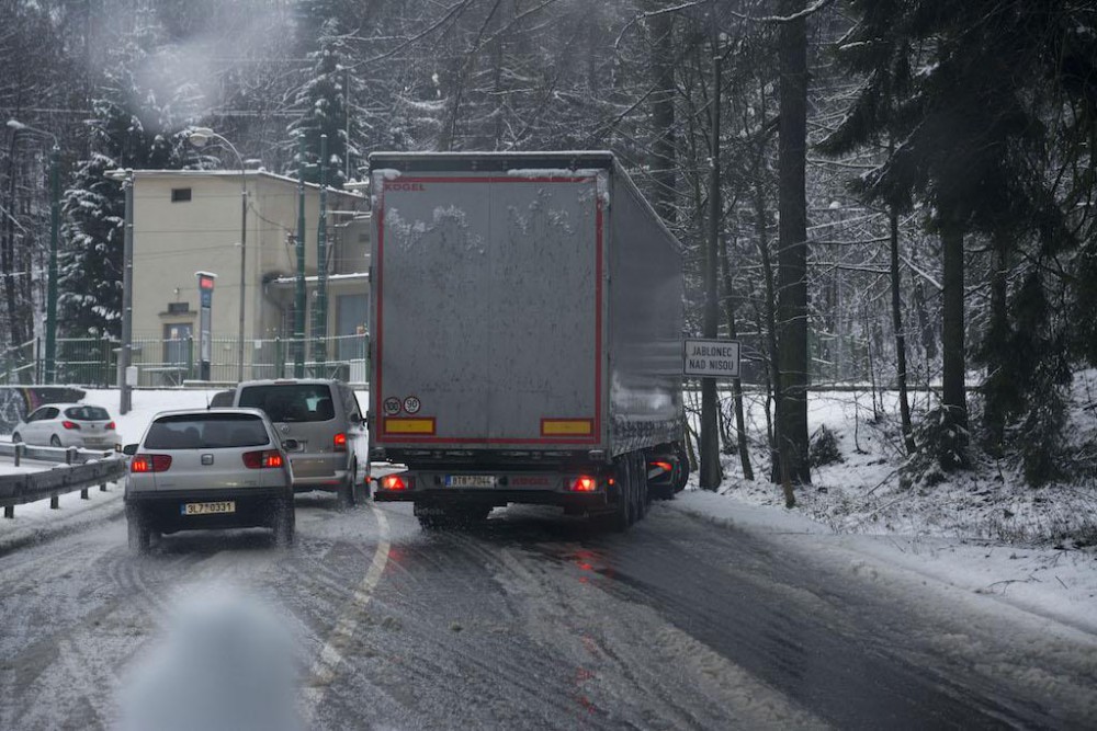 Uvízlý kamion před Jabloncem nad Nisou.