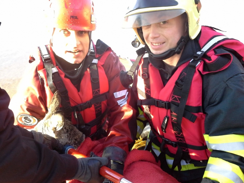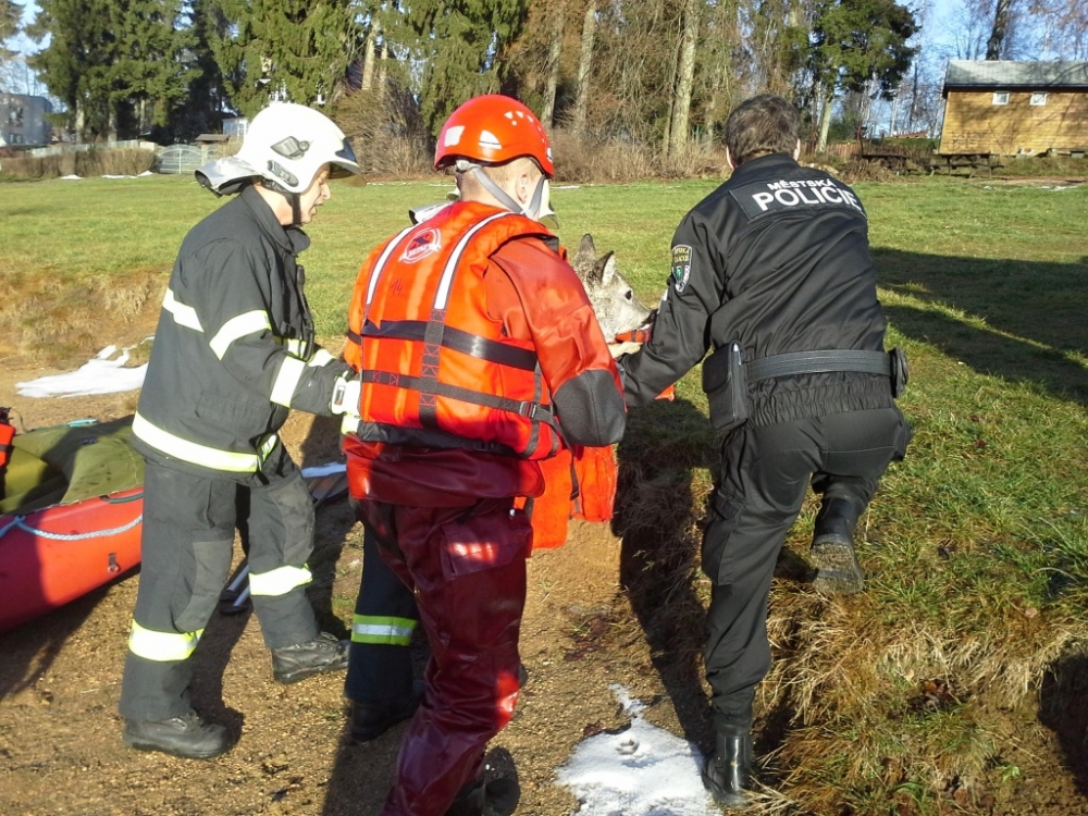 Srnka propadla ledem do přehrady. Foto: HZSLK