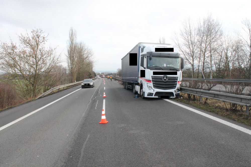 Řidič kamionu zkolaboval za volantem, spolujezdkyně pohotově těžký kolos zastavila