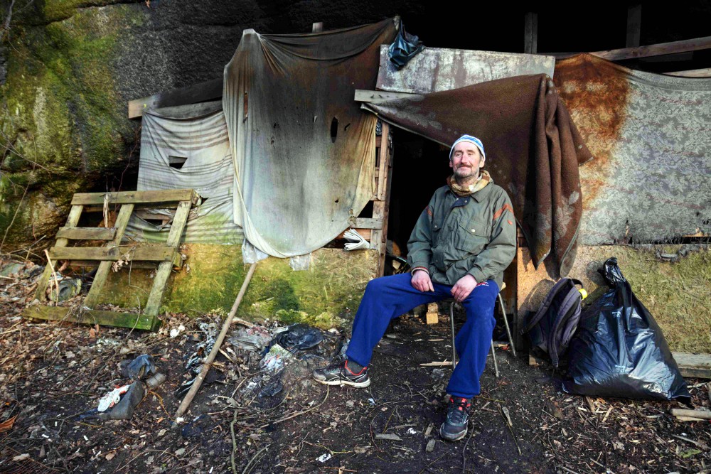 Těším se z každého dne, říká Václav Klukan. Bývalý osvětlovač žije osmým rokem v jeskyni.