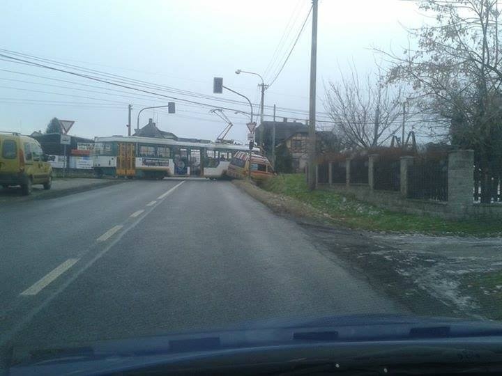 Tramvajovou dopravu zastavila sanitka v kolejišti
