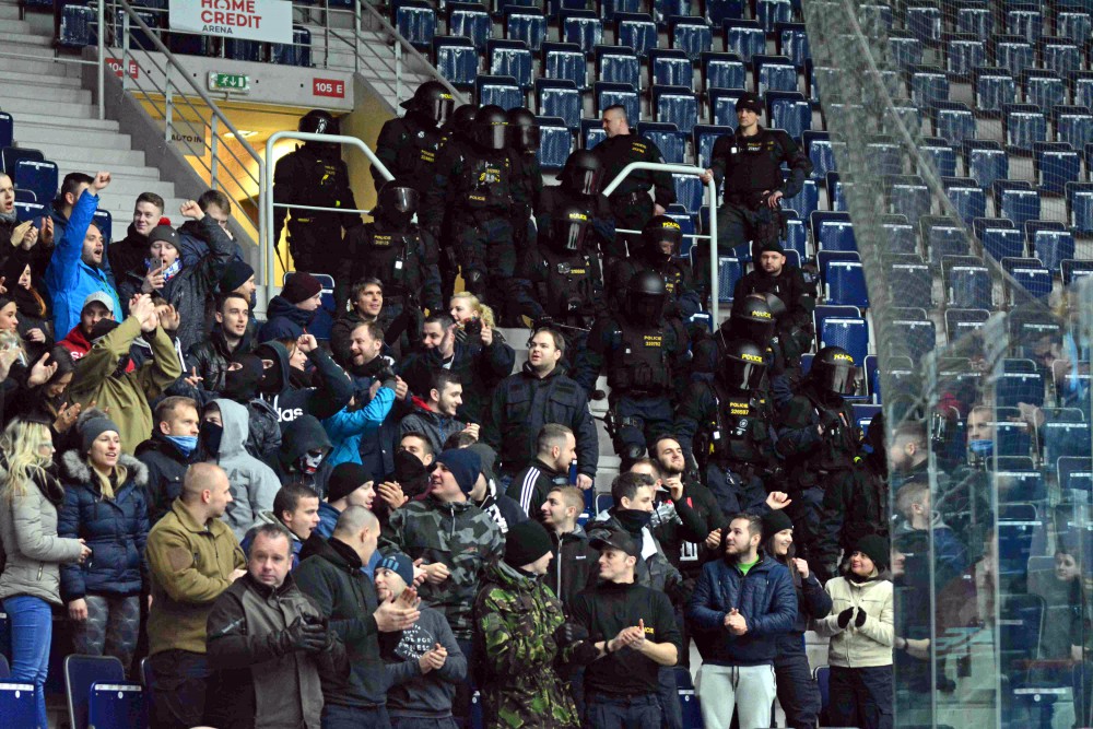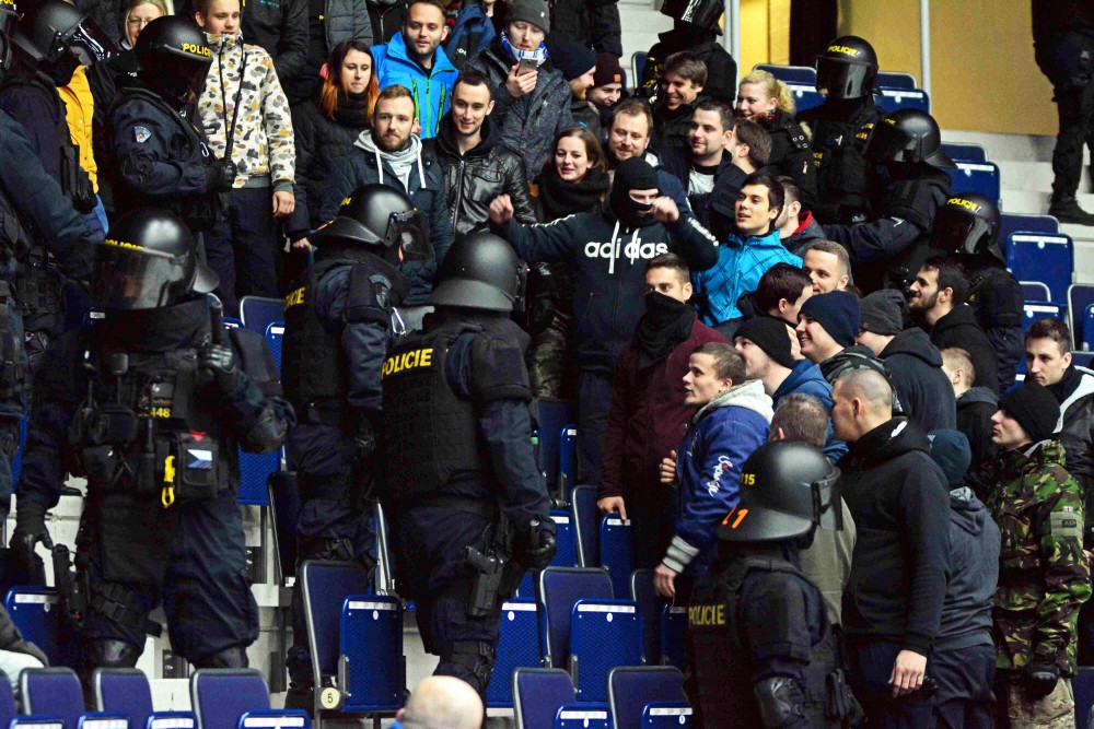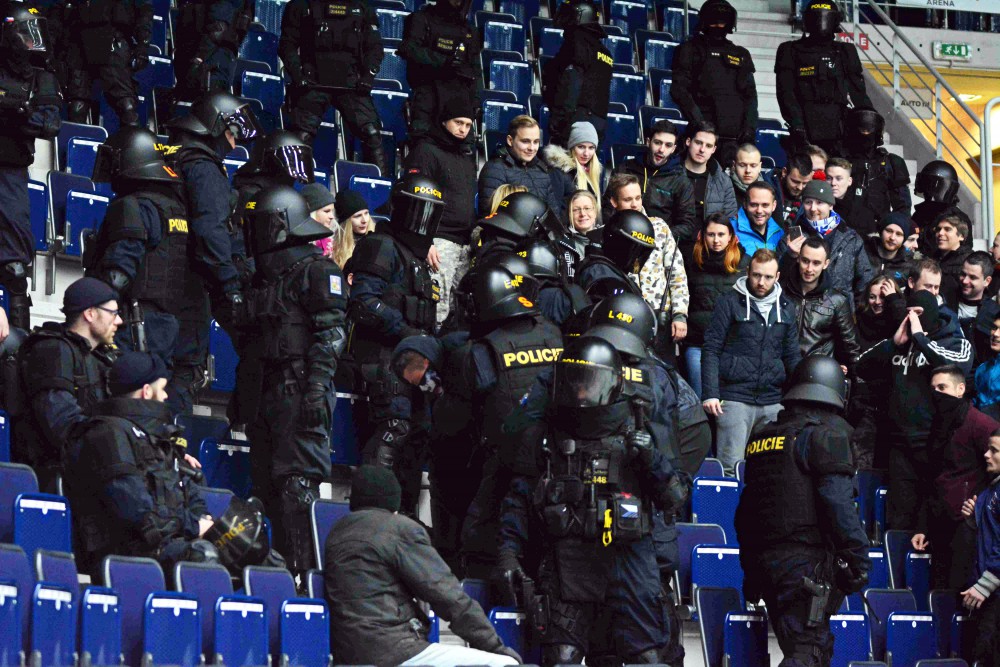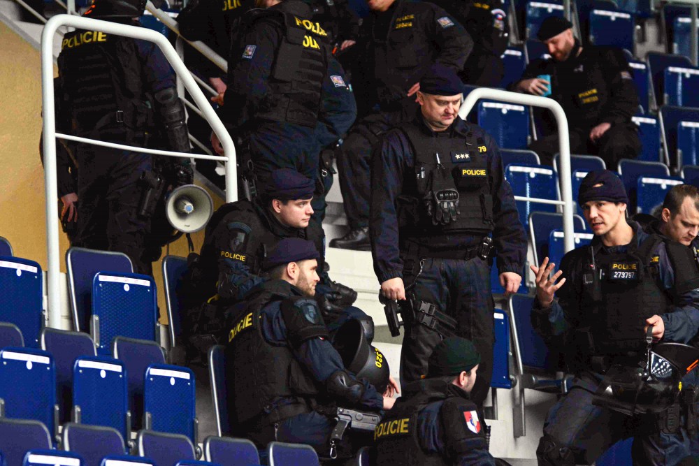FOTO, VIDEO: Pořádková jednotka v aréně nacvičovala zásah proti agresivním fanouškům