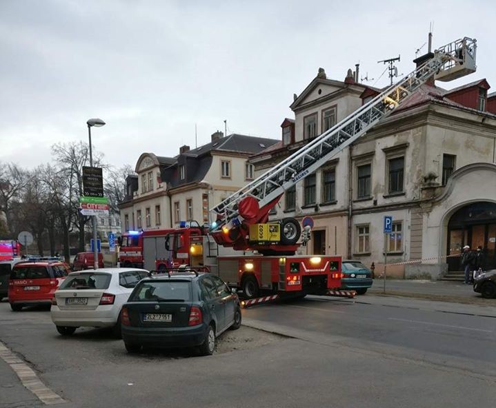 FOTO, VIDEO: Požár v centru Liberce zkomplikoval dopravu v okolí bývalé galerie