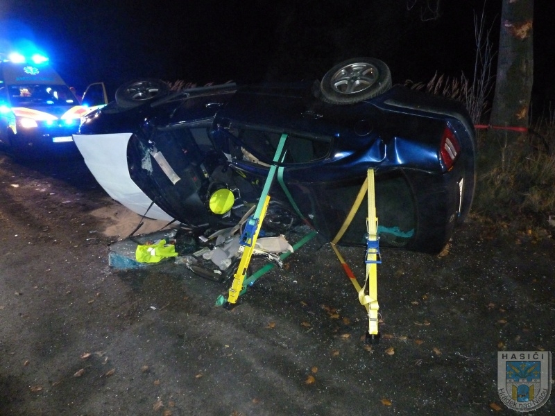 Hasiči vystříhávali řidiče. Octavii obtočil kolem stromu
