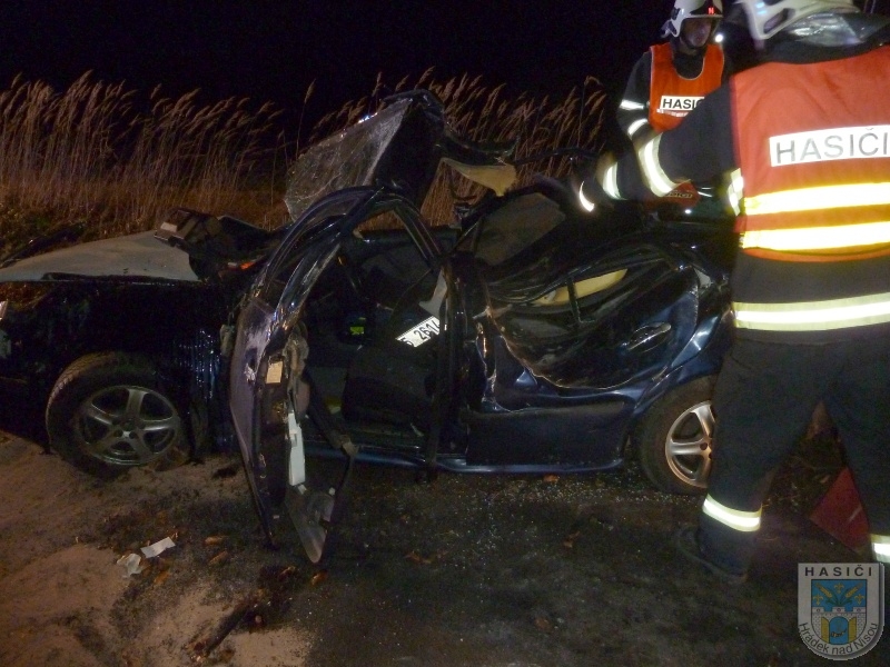 Zdemolované auto po nehodě. Foto: SDH Hrádek nad Nisou