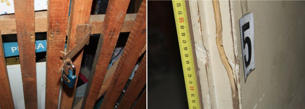 Poškozené dveře, které zůstali za partičkou zlodějů.