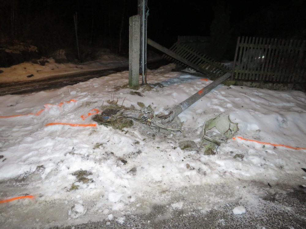 Řidička přerazila lampu veřejného osvětlení. Pak od nehody ujela