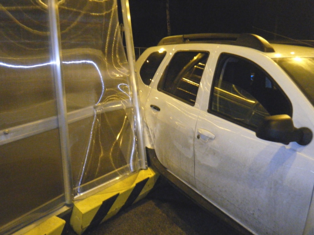 Řidič přímo před hlídkou městské policie naboural do přístřešku s nákupními vozíky. Foto: MP Liberec