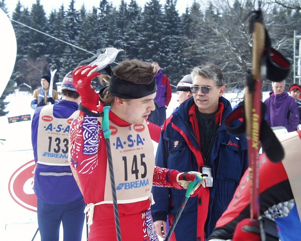 Ředitel závodu Jizerská 50 Josef Vild v roce 2001 na startu na Nové Louce