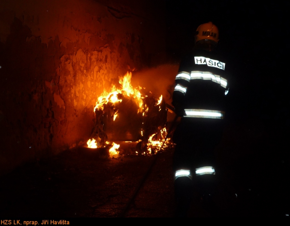 Na Dobiášce někdo zapálil kontejnery. Jeden dotáhl mezi auta