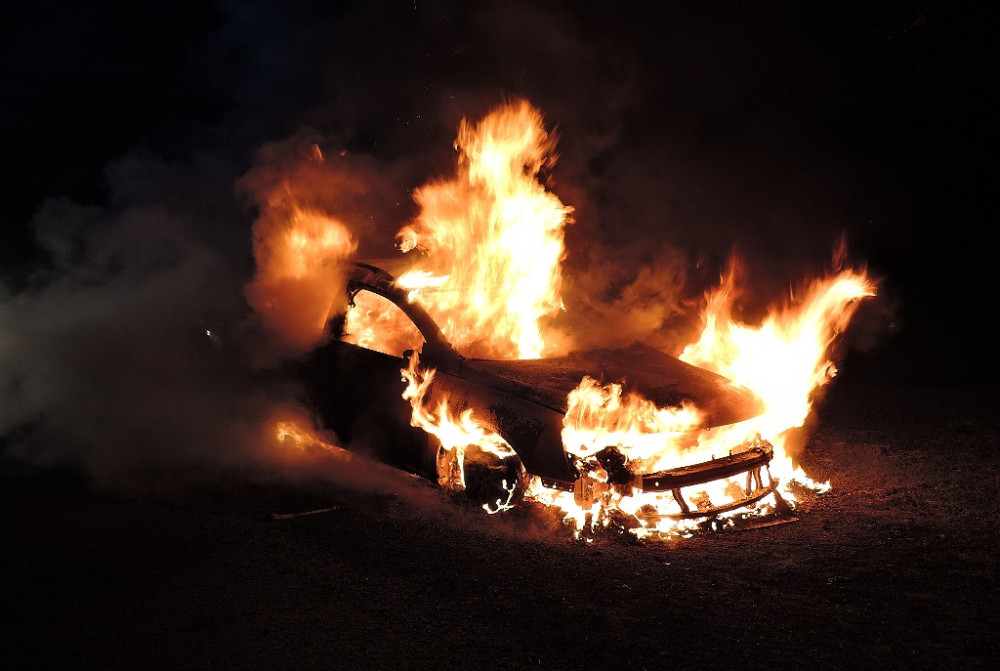 Auto v plamenech.