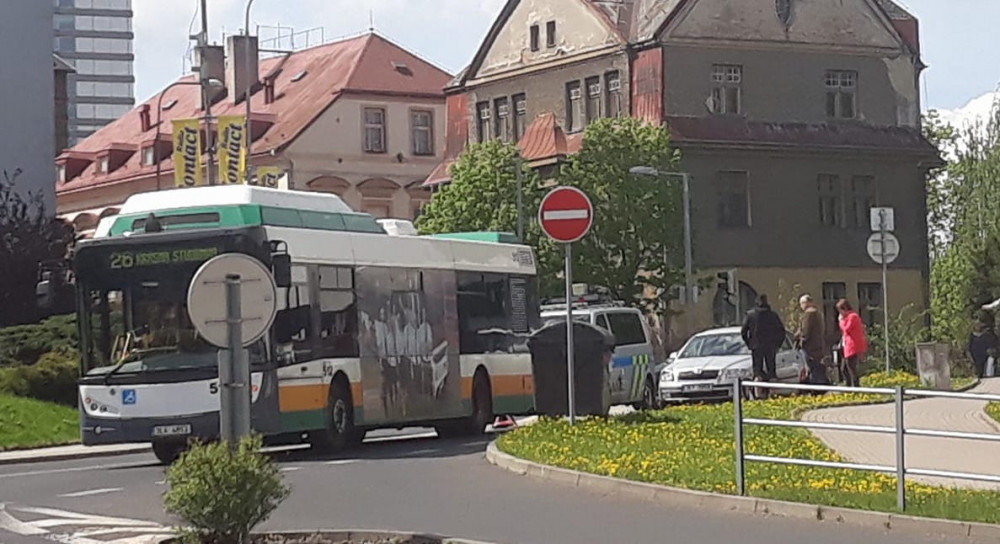 Další střet autobusu s osobním autem u Fora. Nehoda blokuje provoz