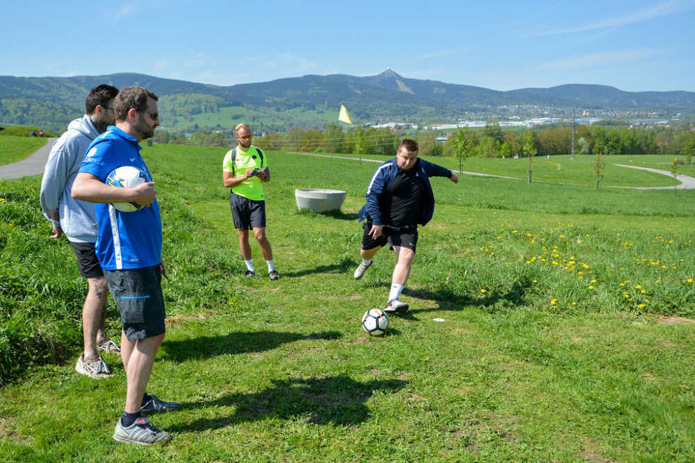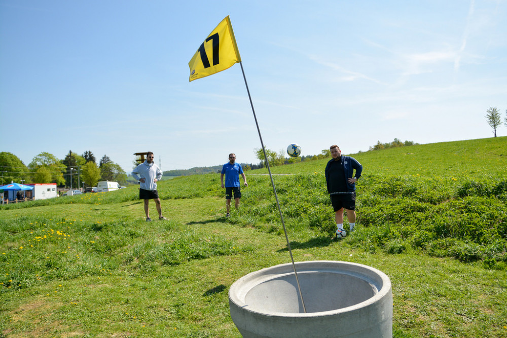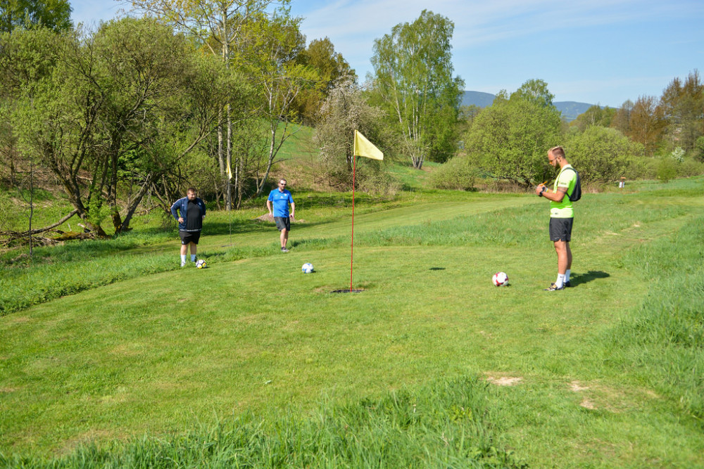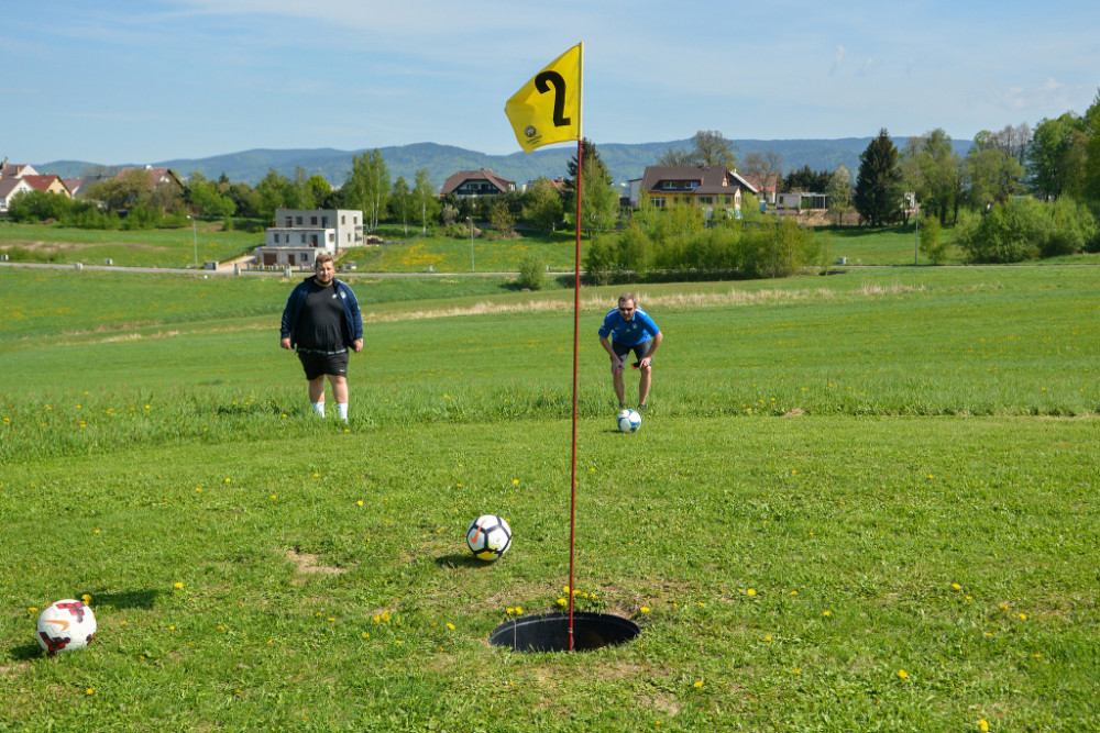 FOTO: Ve Vesci vzniklo hřiště na fotbalgolf. Nabízí osmnáct jamek