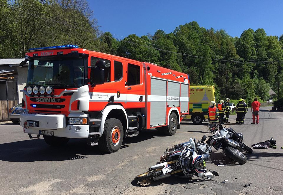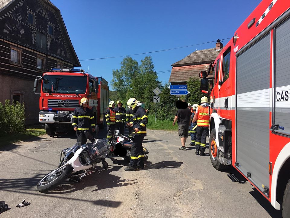 FOTO: Nedaleko Zákup havarovaly dvě motorky. Na místo letěl i vrtulník