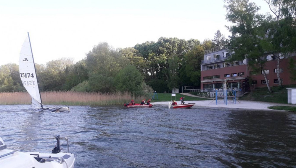 Katamaran uvízl uprostřed Máchova jezera. Jeden z plováků se plnil vodou