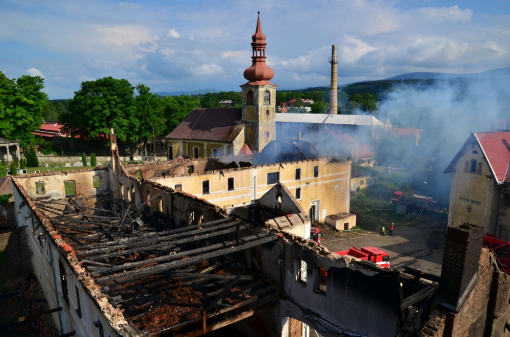 FOTO: Hasiči třetí den zasahují v Jindřichovicích. Příčinu požáru bude hledat speciálně vycvičený pes