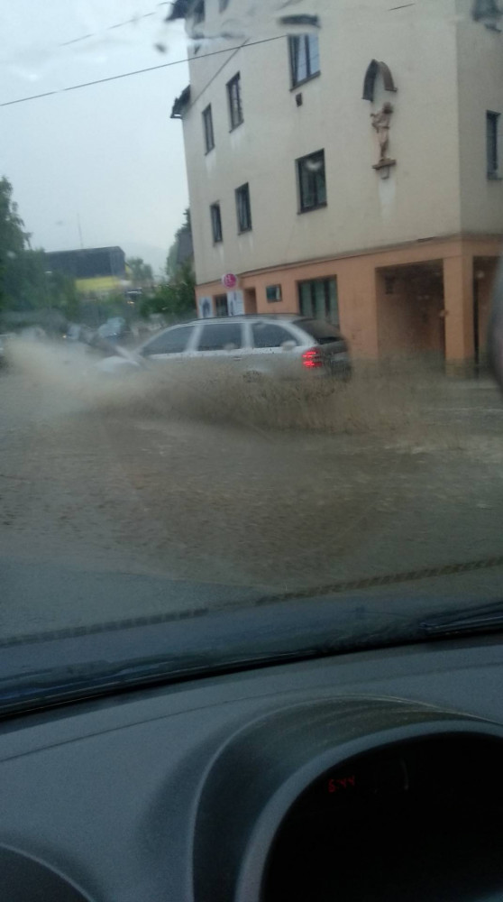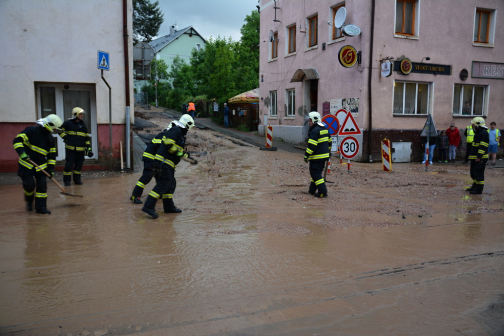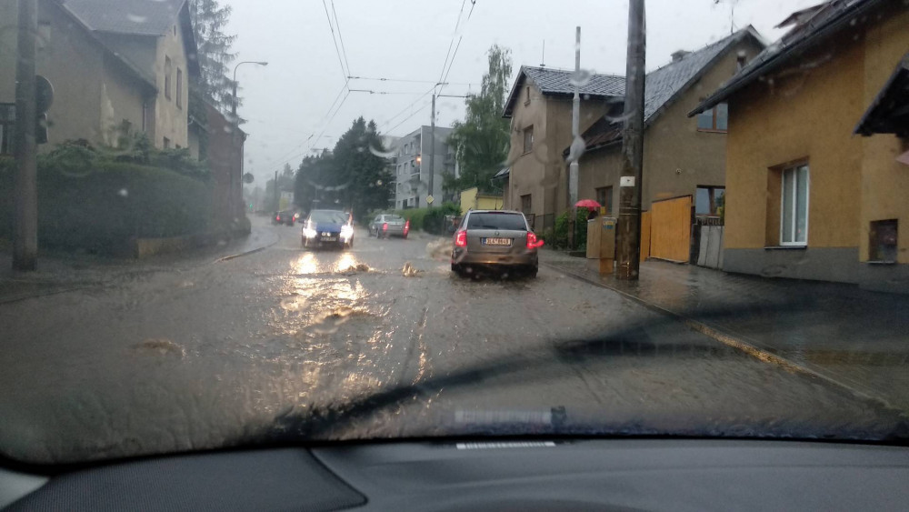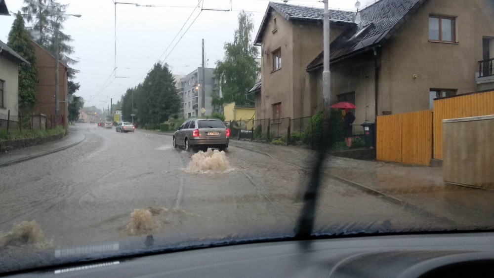 FOTO, VIDEO: Přívalový liják spláchl část Liberce. Voda stříkala kanály, z Husitské byla divoká řeka