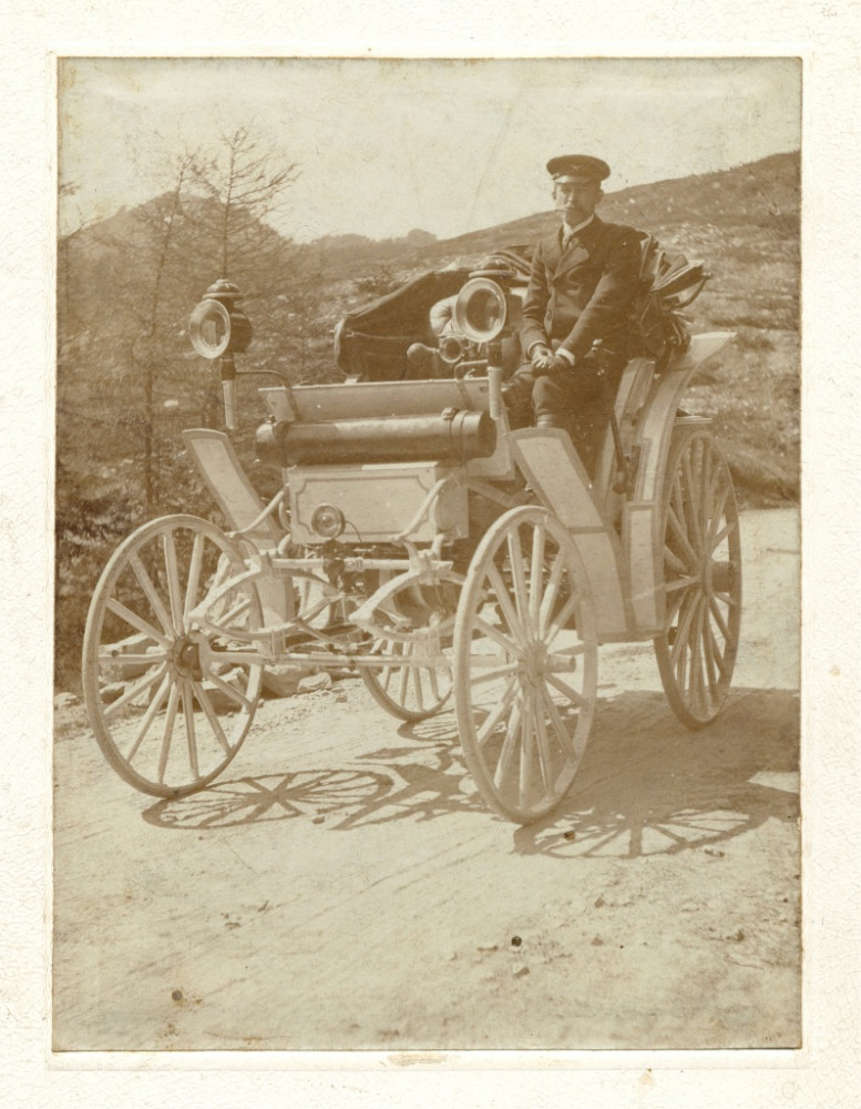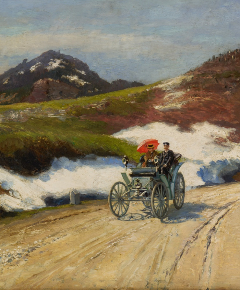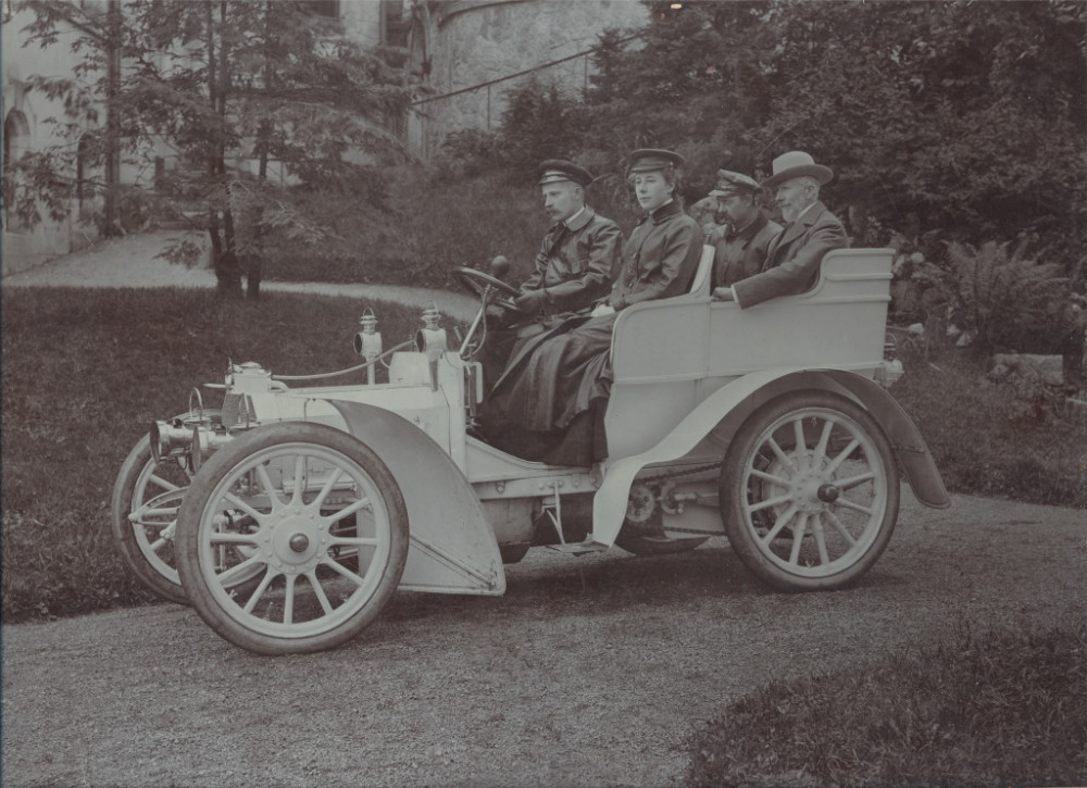 Theodor Liebieg na voze Benz Victoria. Předloha pro obraz Huga Charlemonta Jízda autem