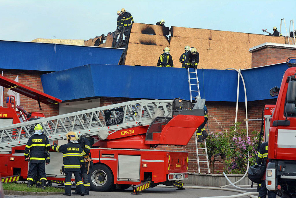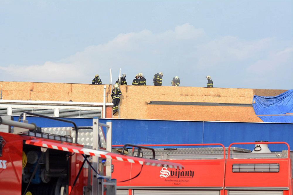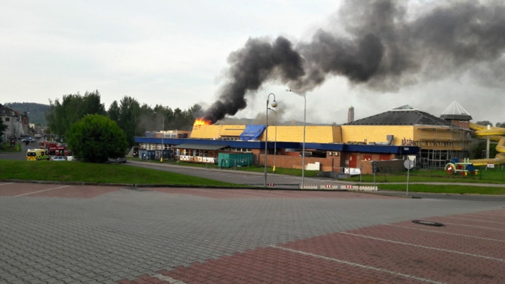 FOTO, VIDEO: Hustý černý kouř a plameny. Hořela střecha jabloneckého bazénu