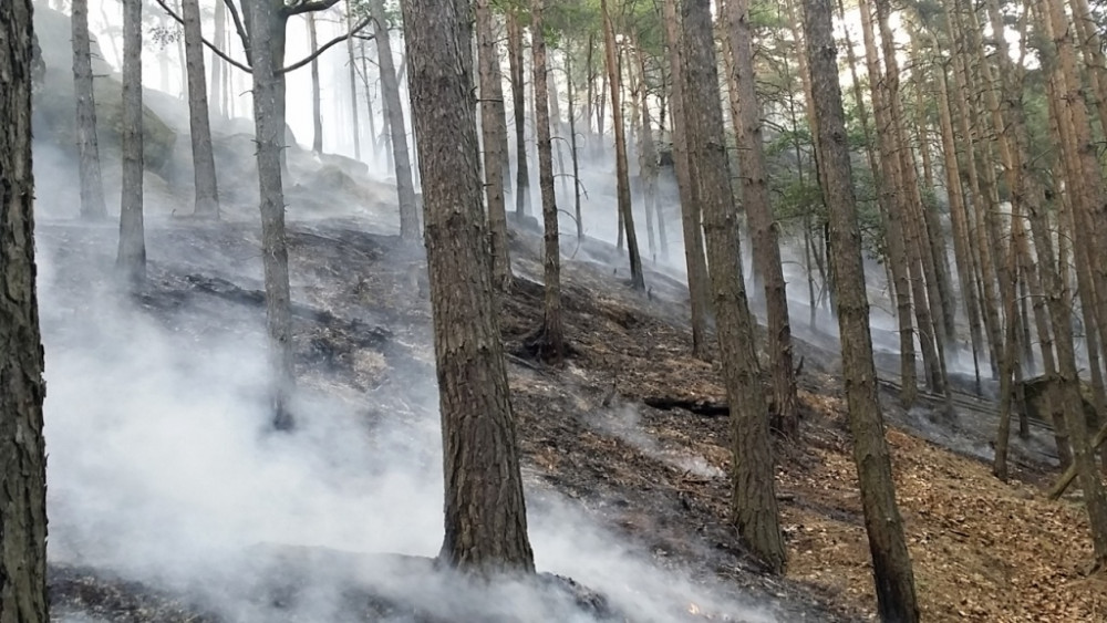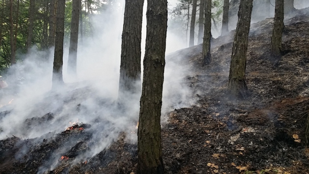 FOTO: U Dubé hoří dva hektary lesa. Hasit pomáhá i vrtulník