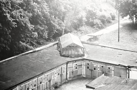 Pohled na garáže do míst, kde dnes stojí krajský úřad. Foto: LIBEREC:REICHENBERG