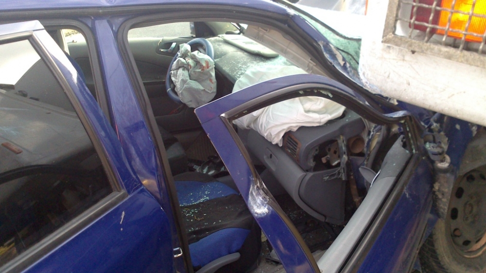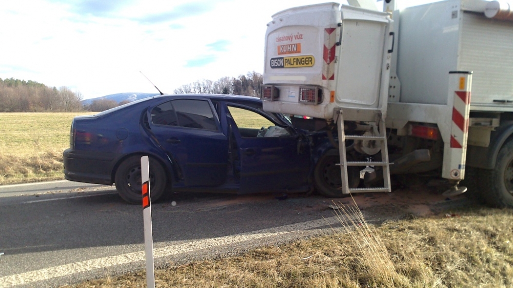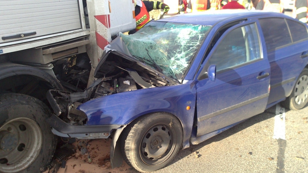 Řidič s osobním vozem Škoda Octavia čelně narazil do plošiny energetického podniku. Foto: HZSLK