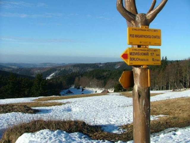 Turistický rozcestník se někomu hodil do kamen nebo na zahrádku
