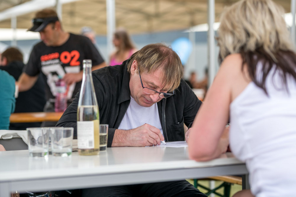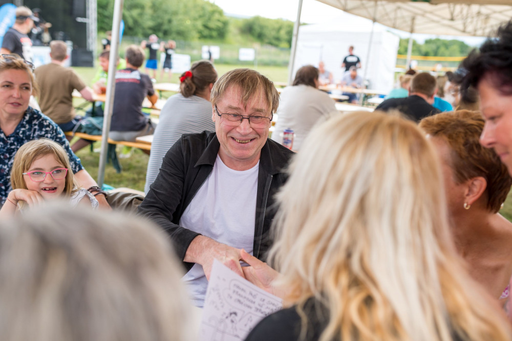 Petr Urban kreslí na Májových hodech v Drylocku