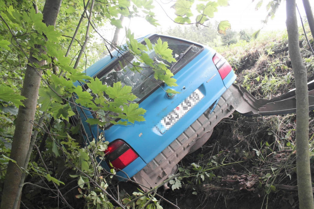 Mladý řidič felicie usnul za volantem a havaroval. S autem skončil mezi stromy