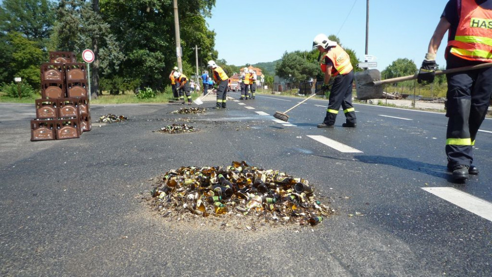FOTO: Z náklaďáku se vysypalo 160 přepravek piva. Silnice byla uzavřená