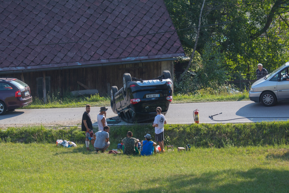 Pod Kozákovem havarovalo auto, skončilo na střeše