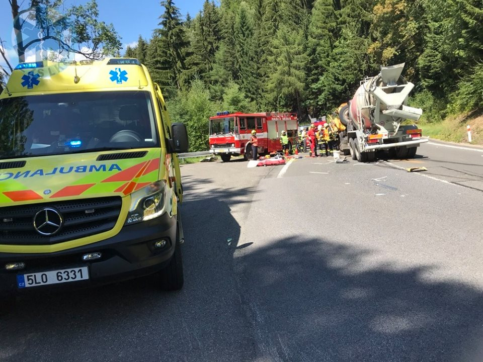 FOTO: Srážka náklaďáku s autobusem. Pět zraněných, z toho tři děti