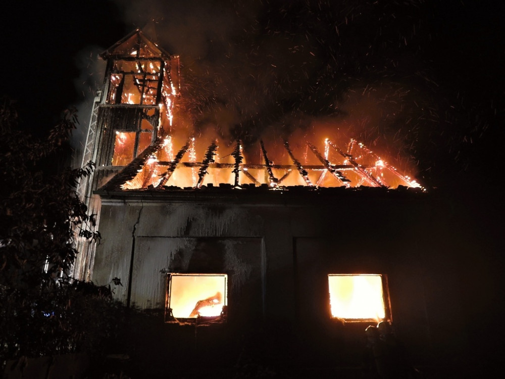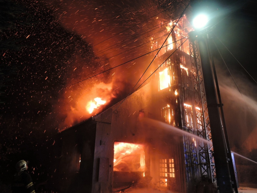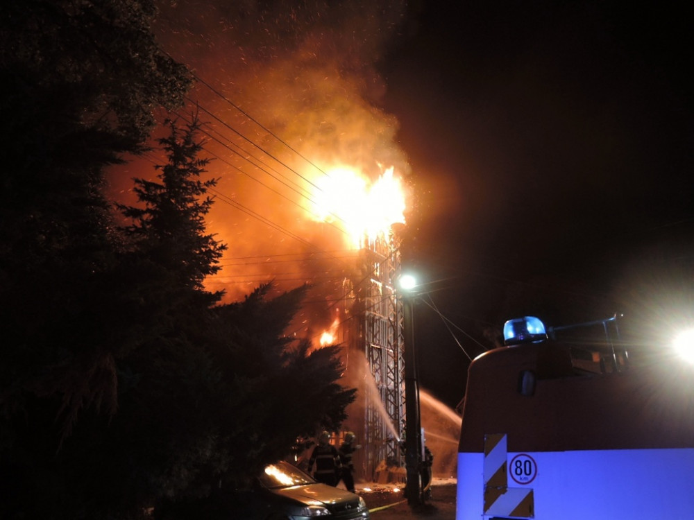 FOTO: Ve Višňové v noci shořela bývalá hasičárna. Uvnitř vybuchla acetylenová láhev