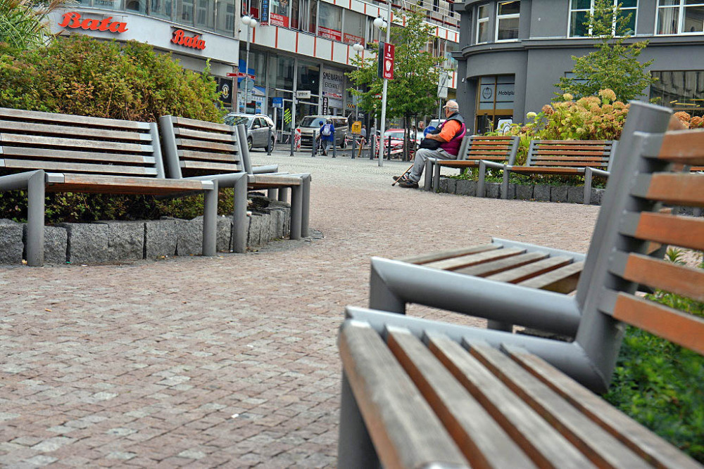 Lavičky na Soukenném náměstí.