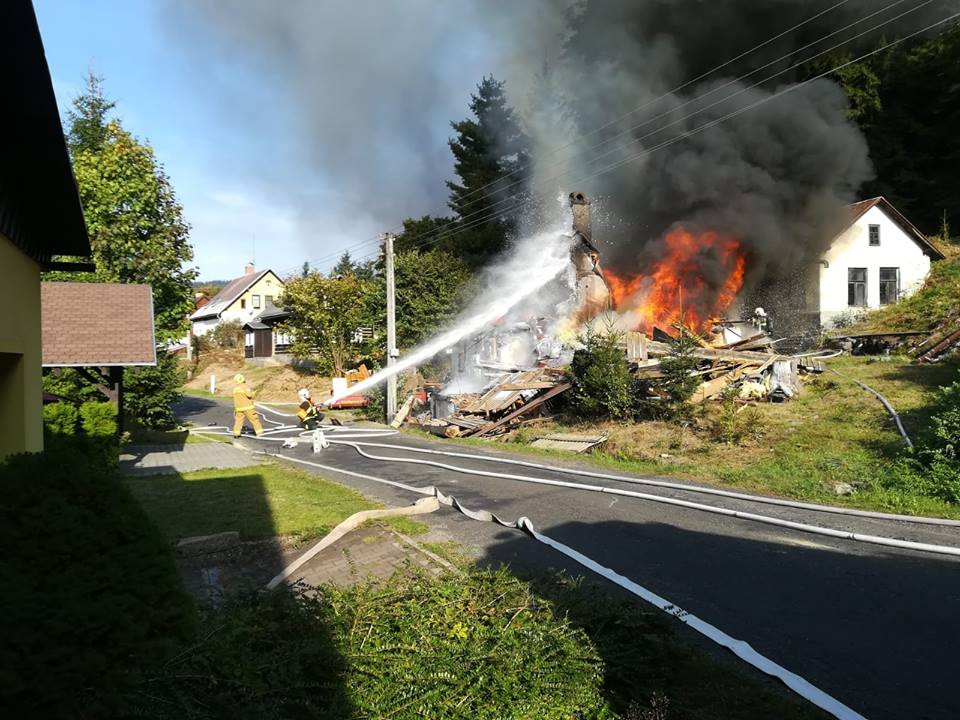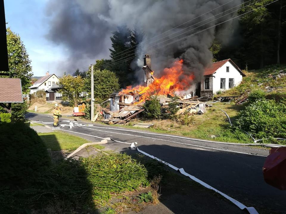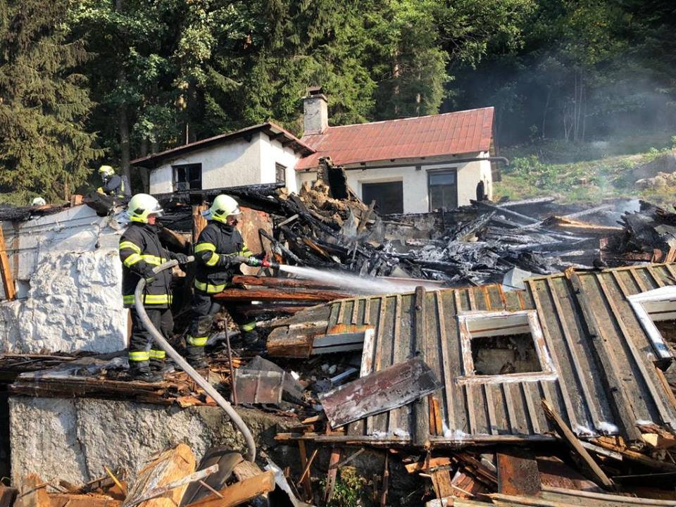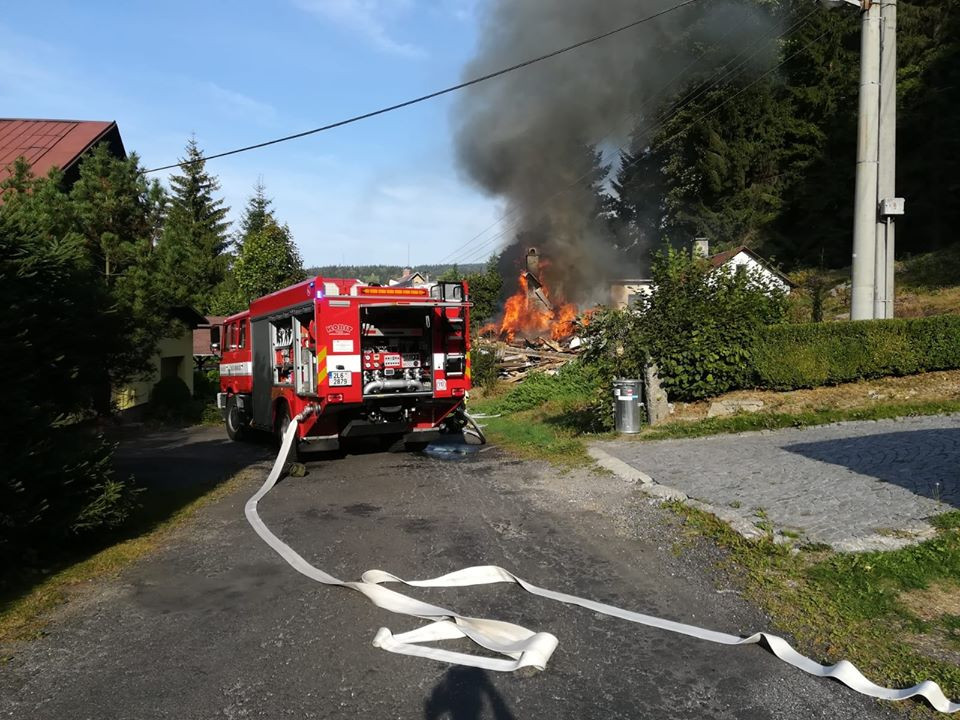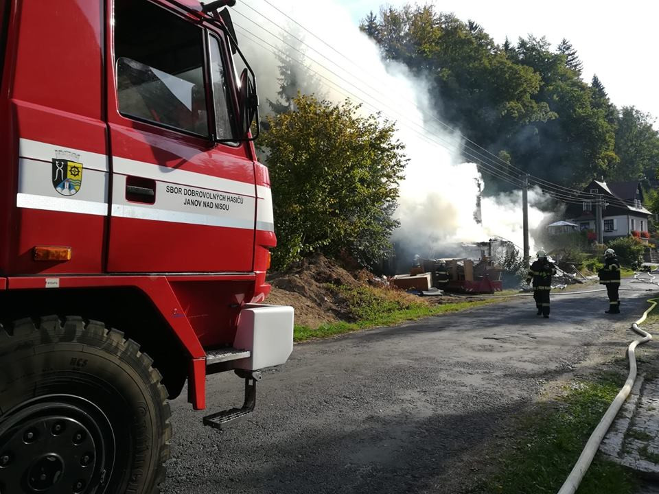 FOTO: Roubenka shořela za bílého dne. U požáru zasahovalo pět jednotek hasičů
