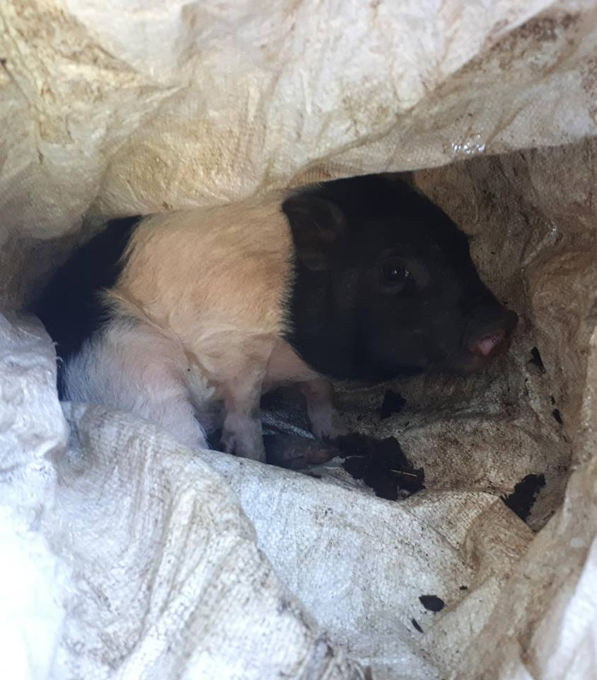 FOTO: K hýbajícímu pytli přivolali policii, uvnitř bylo malé selátko