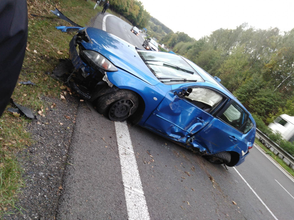 Nehoda na rychlostce ve stoupání za Stráží. Řidič auta je zraněný