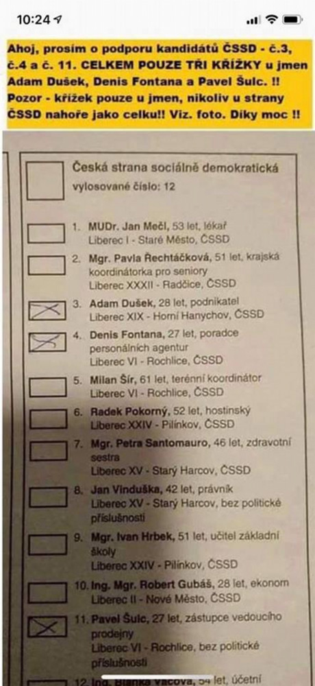 Volte jen mě a dva kolegy, chodilo lidem do zpráv. Z mého profilu nic neodešlo, hájí se kandidát ČSSD