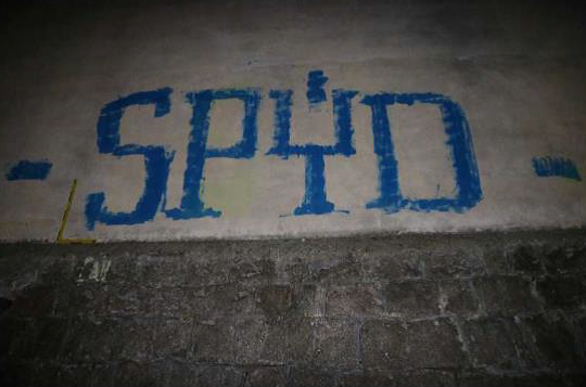Nápis, který sprejer vymaloval na zeď školy