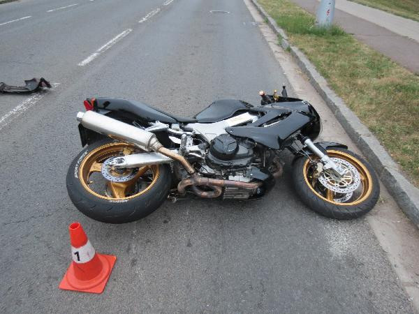 Řidič motorky v zatáčce havaroval, naboural do domu i dvou aut