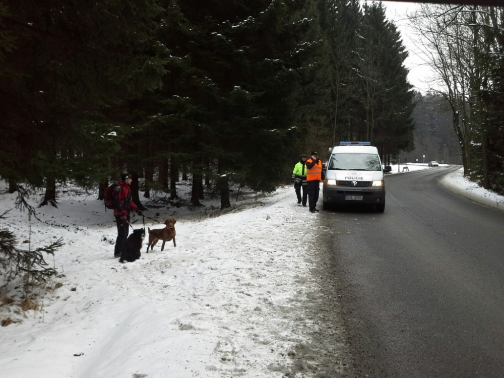 Policisté pátrají společně s hasiči po ztracené ženě. Foto: HZSLK
