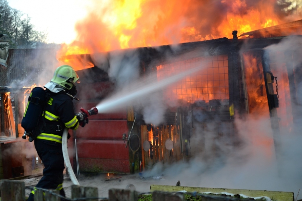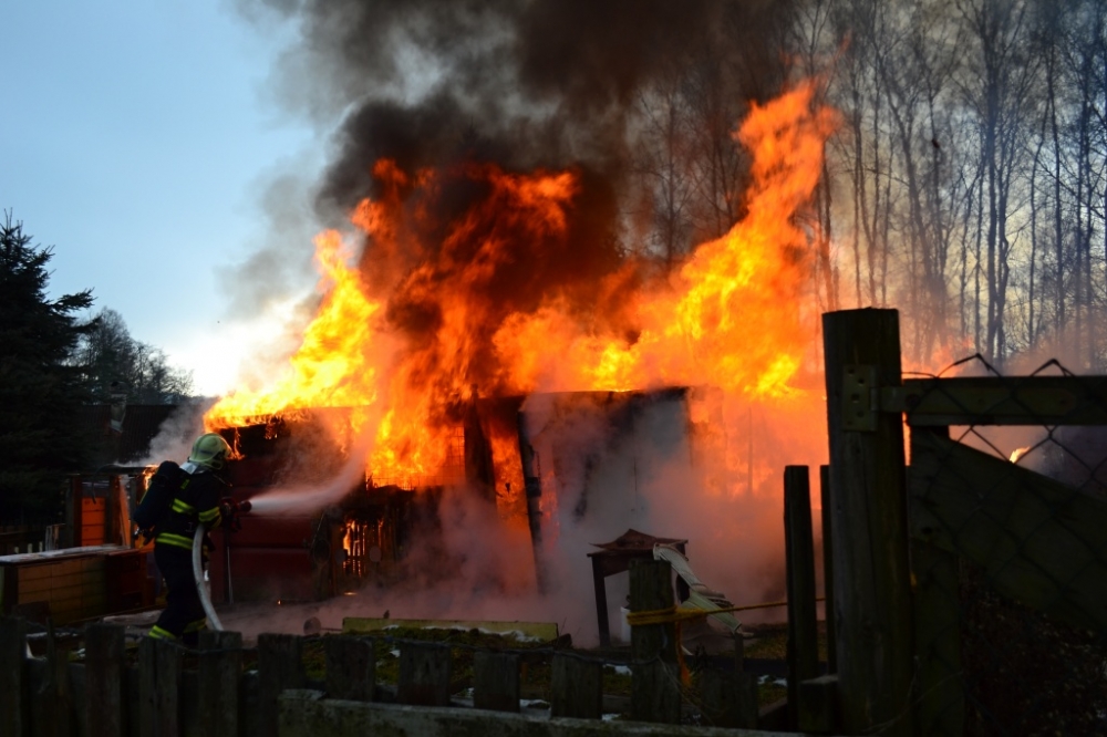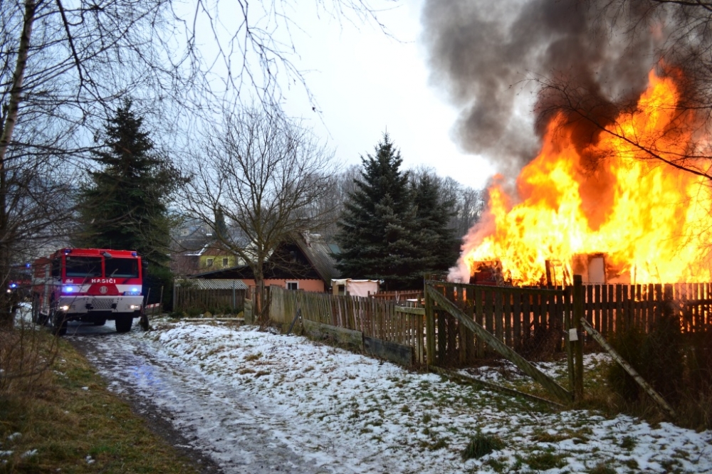 Chatku na okraji Liberce zachvátil požár. Žár roztrhl lahev na propan. Foto: HZSLK