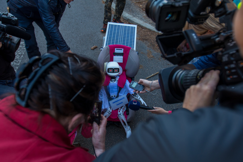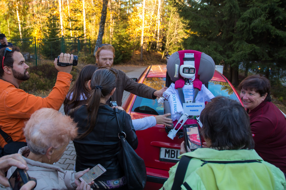 FOTO: Humanoid Matylda se už vydal na svou cestu autostopem, míří k České Lípě